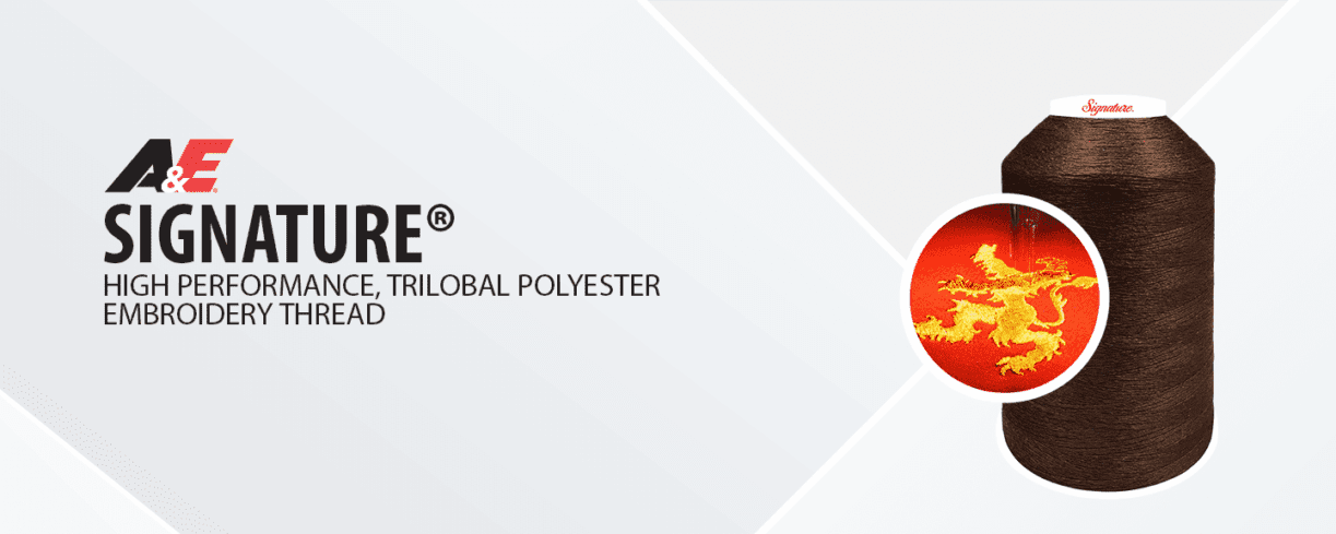 Regularly used and preferred in workwear and performance applications, A&E’s Signature® embroidery thread provides quality sewing performance, coverage, and abrasion resistance. This thread’s high luster appearance displays great definition on intricate stitch patterns. Bobbins available.