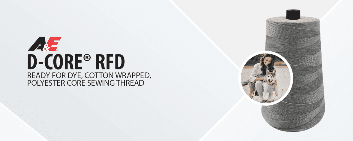 A&E’s D-Core® RFD is engineered for its thread color to fade down with the garment after finishing. Featuring an enhanced cotton wrap and continuous filament polyester core for added strength, this ready-for-dye variant of A&E’s D-Core® maintains integrity during enzyme washing and other finishing processes after garment dyeing. D-Core® RFD is available in light, dark, and very dark for additional versatility.