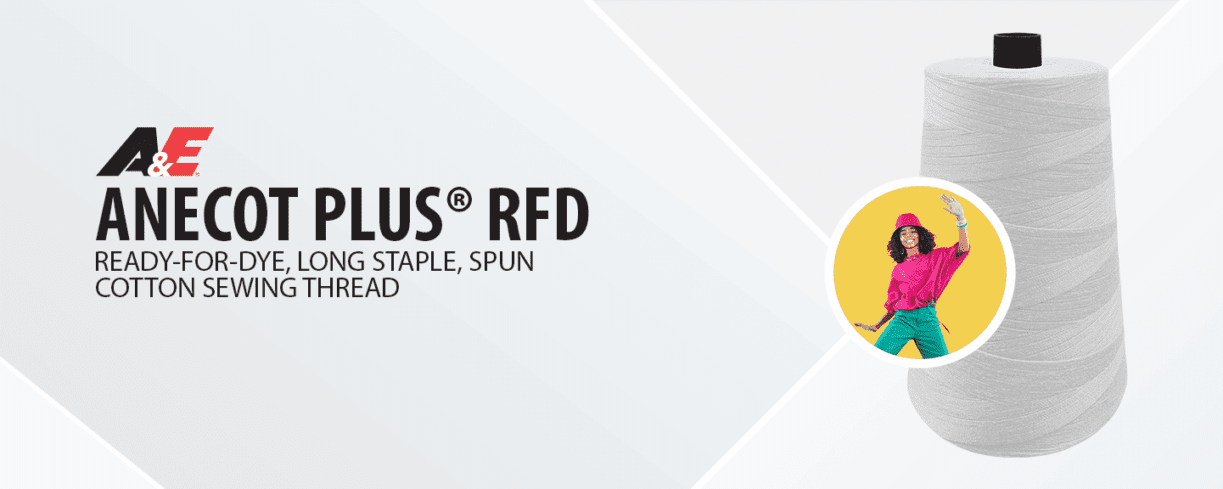 A&E’s Anecot Plus® RFD is a 100% long staple, spun cotton sewing thread. Available in its natural color, this ready-for-dye variant of Anecot Plus® is twisted and finished. Manufactured with 100% cotton, Anecot Plus® RFD is ideal for use in denim and casual garment overdye operations. Due to its natural cotton fiber, this thread will not melt and is not affected by needle heat or pressing. Anecot Plus® RFD is offered in soft, gassed, and mercerized and gassed.
